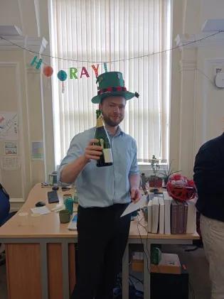Jonathan passes viva Jonathan has successfully defended his thesis, "Molecular Simulations of Self-Assembly and Adsorption in Non-Aqueous Media", examined by Professor Chris Lorenz (King's College London) and Dr Ephrath Solel Moroshko (University of Edinburgh). As well as having a door named after him, Jonathan also has a new headpiece. Well done Jonathan! Publication date 17 Mar, 2025
