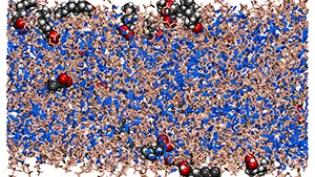 A research article on the behaviour of flavour molecules in Scotch whisky has recently been published in the Journal of Molecular Liquids The first two authors are Emma Shuttleworth, a recent Chemical Physics graduate, and Dr Rui Apóstolo, who supervised the project. Rui is a former PDRA in Philip Camp’s group, and now works for EPCC. The final-year BSc project was carried out in collaboration with colleagues at The Scotch Whisky Research Institute in nearby Riccarton. One of the SWRI co-authors, Joan Clark-Nicolas, is also a former member of the School. Molecular dynamics simulations of flavour molecules in Scotch whisky, E. E. Shuttleworth, R. F. G. Apóstolo, P. J. Camp, J. M. Conner, B. Harrison, F. Jack, and J. Clark-Nicolas Molecular dynamics simulations were used to explore what happens to flavour molecules at the interface between the liquid and the ‘headspace’ – the air in the glass above the whisky. Depending on the alcohol content, and hence how much water is put in the whisky, different flavour molecules have different propensities to evaporate into the headspace and be sensed by the drinker. This was a great project in collaboration with SWRI, a fantastic achievement for Emma to get an article published on her BSc Chemical Physics work, and excellent experience for Rui and Joan to manage the study from start to finish. I would like to do more of this kind of applied research – and maybe get some free whisky samples! Professor Philip Camp Publication date 13 Mar, 2024